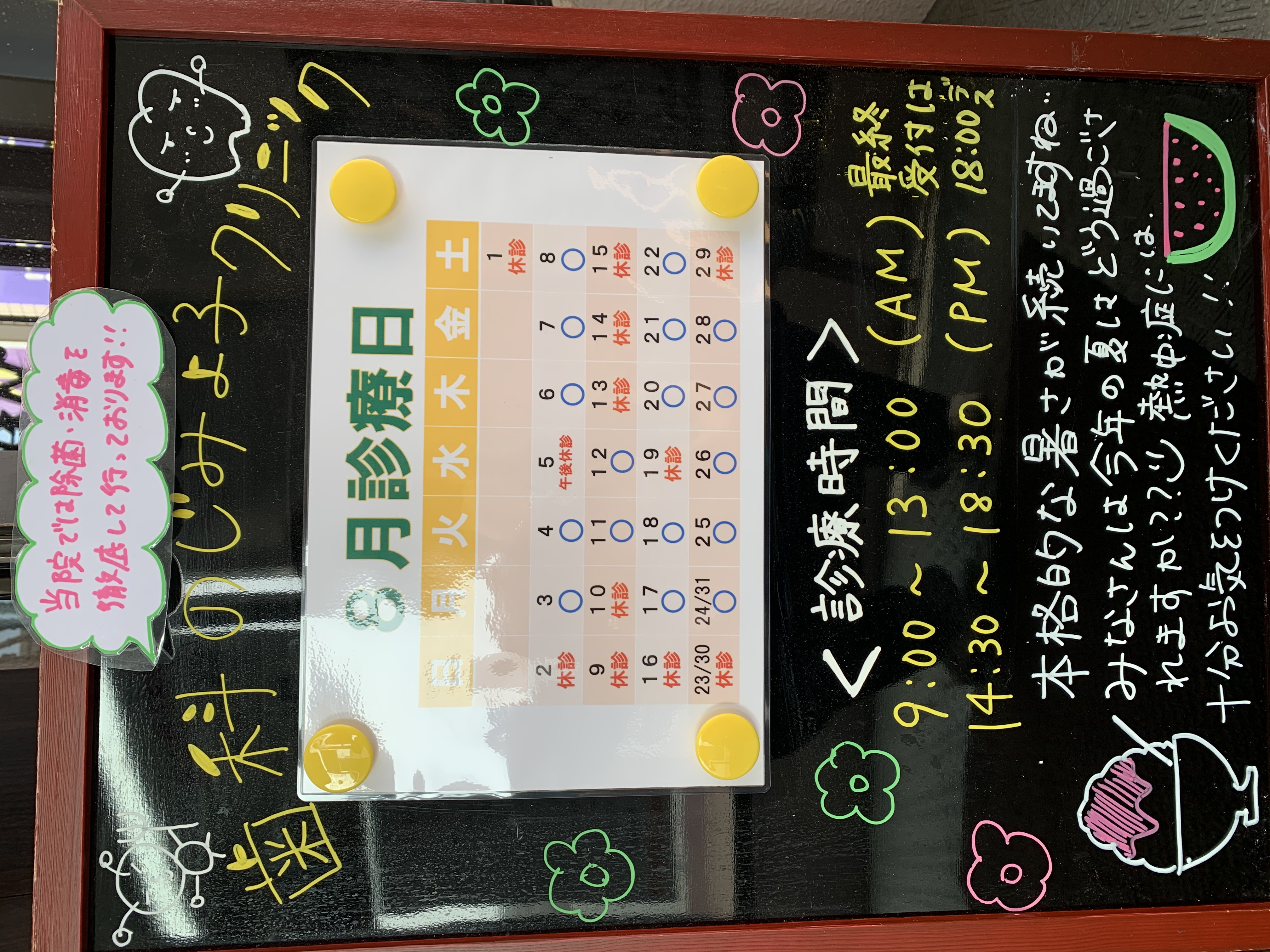 1日・5日午後・13〜15日・19日・29日 日・祝は全て休診となっております。