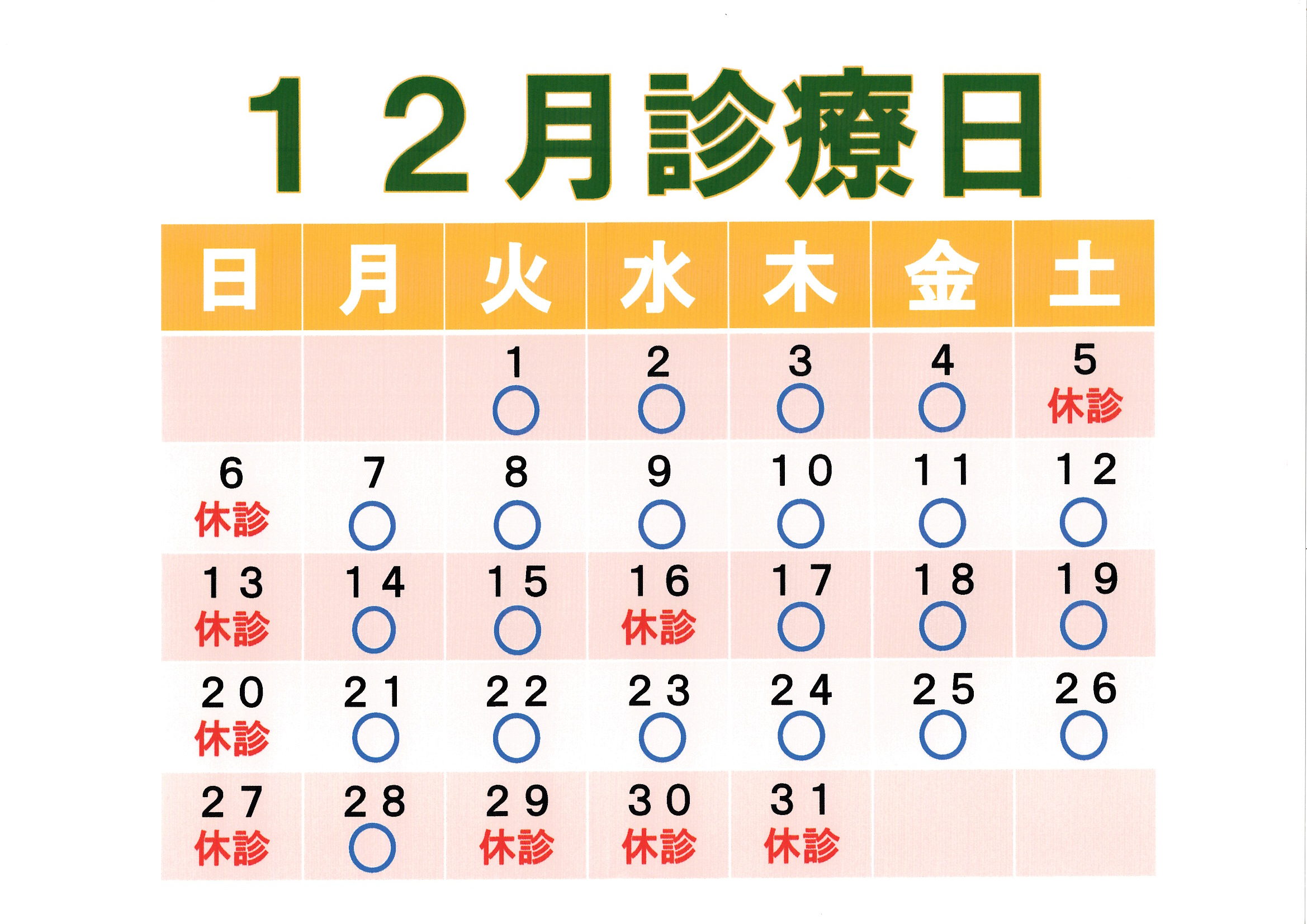 年末年始は12月29日〜1月4日まで休診とさせていただきます。