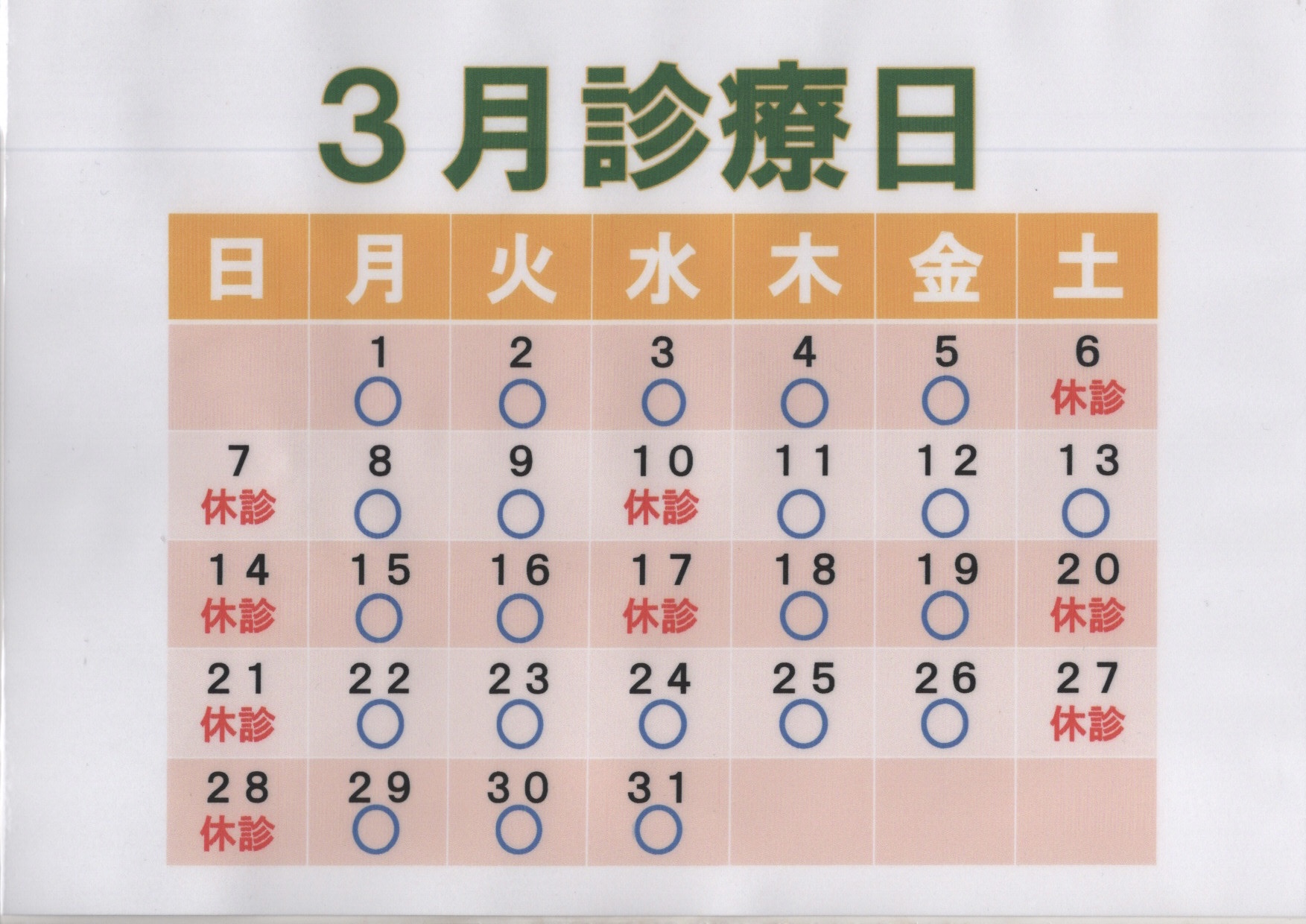 上記の期間は休診となります。ご迷惑おかけいたしますがよろしくお願いいたします。